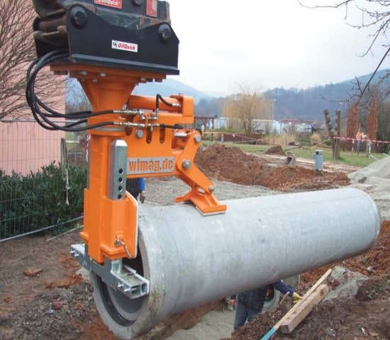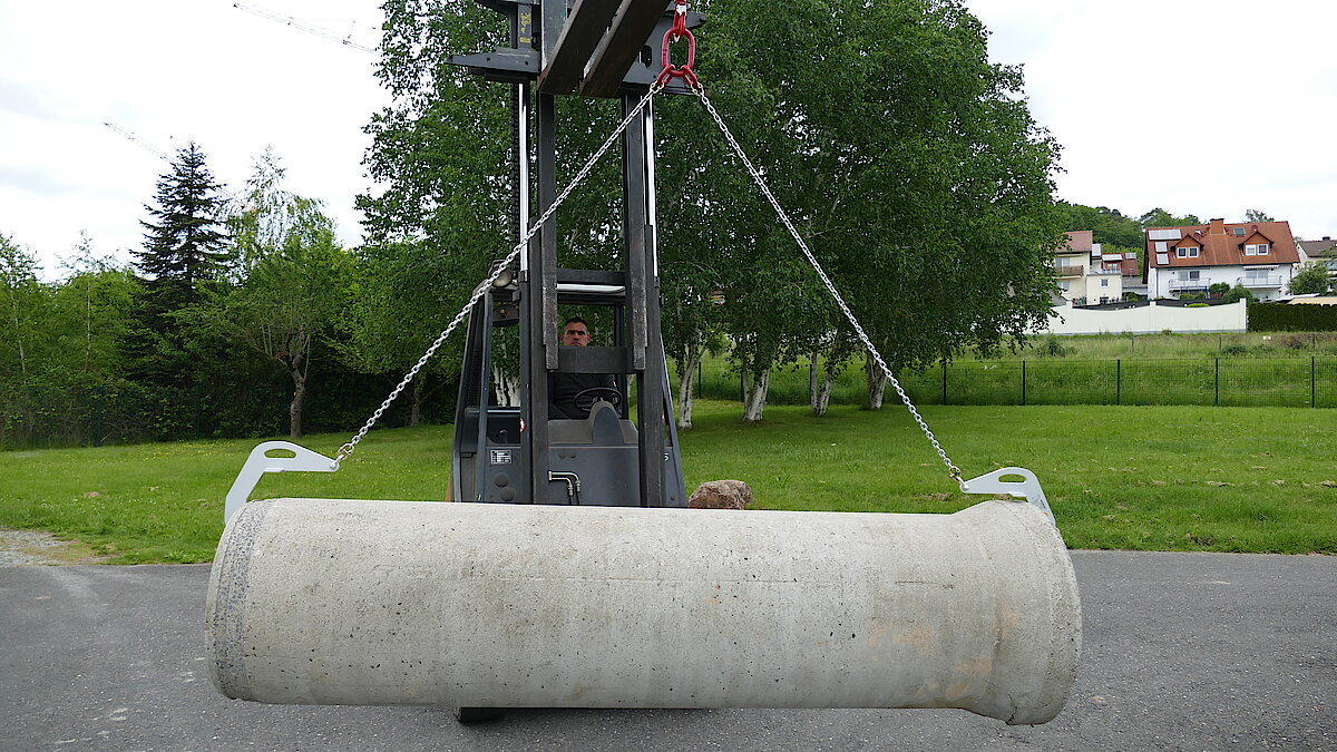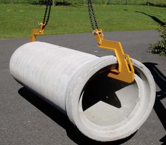 De buizenhaak is ideaal voor het optillen van betonnen buizen, bijvoorbeeld bij opslag of plaatsing in een sleuf. De haak past zich aan de buisvorm aan en zorgt voor een stabiele greep tijdens het hijsen.