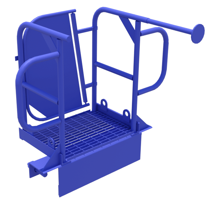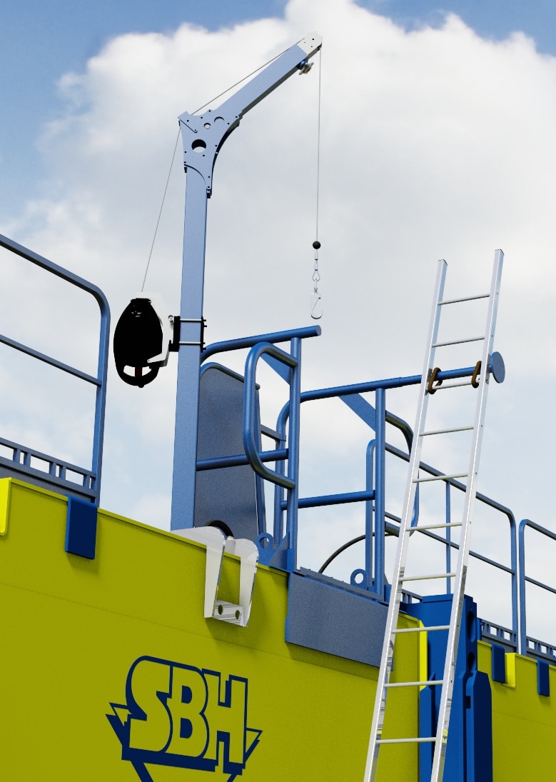 Enerzijds is er de instapkooi die bevestigd wordt aan de beschoeiing en die ook voorzien is van een speciale steun om een standaard ladder op een veilige en stevige manier tegen te kunnen plaatsen.