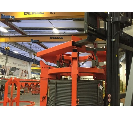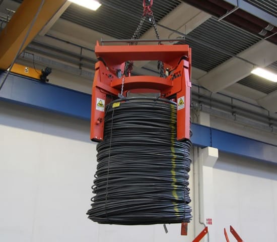 Een veilig en klein hijsapparaat dat, dankzij zijn up-to-date eigenschappen, van buitenaf opgerolde en getrokken rollen kan vasthaken (al dan niet teruggespoeld). Coil Spider is uitgerust met een automatisch ontgrendelings- en verbergpistool (gepatenteerd) dat, in combinatie met de kleinere afmetingen, het mogelijk maakt om goederen van vrachtwagens en pay-offs snel en veilig te lossen, ook bij zeer lage kranen.