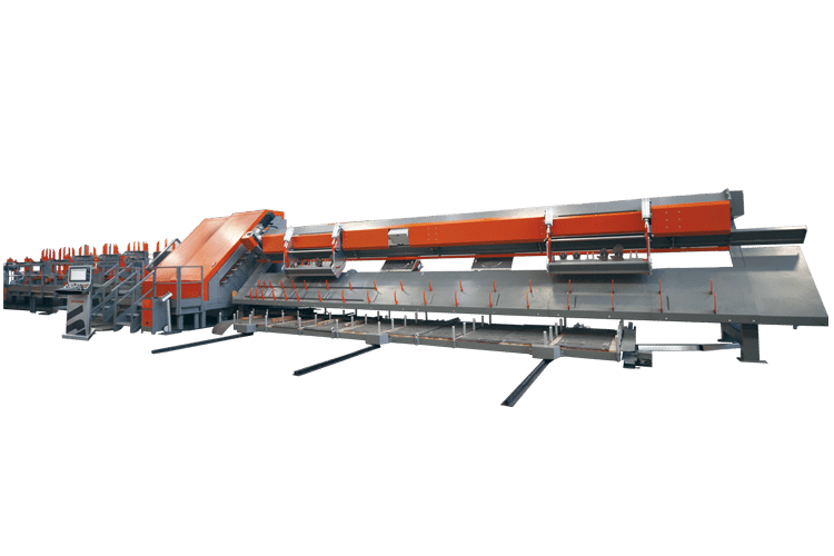 indexeerwagen voor het automatisch verzamelen en sorteren van de geproduceerde staven