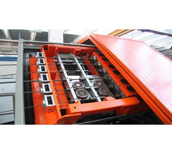 2 bi-directionele buigeenheden werken “off-line” zodat de staven in “gemaskeerde tijd” worden gebogen