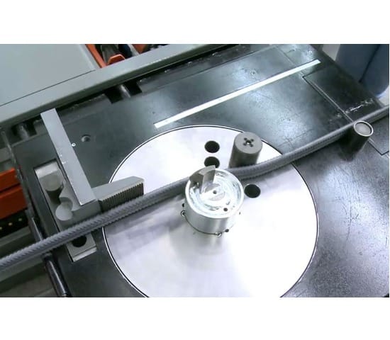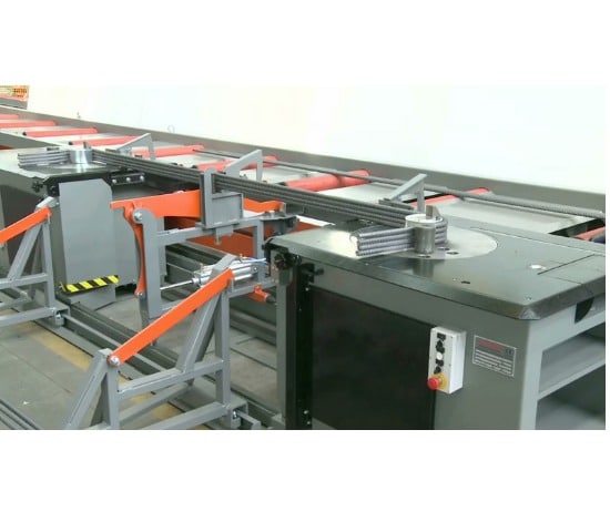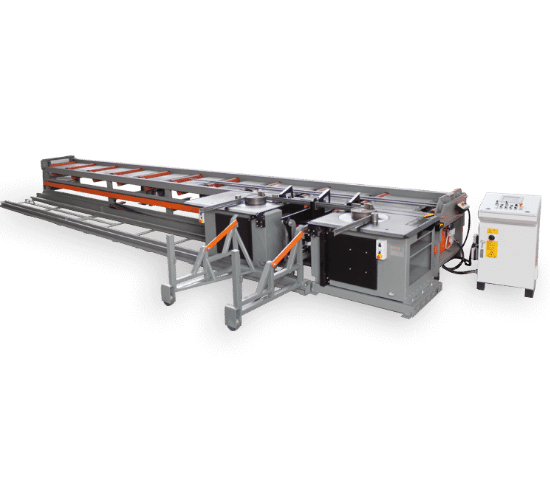 Apparaat voor de productie van “bottlenecks” met automatisch systeem voor het in- en uitwerpen van staven.