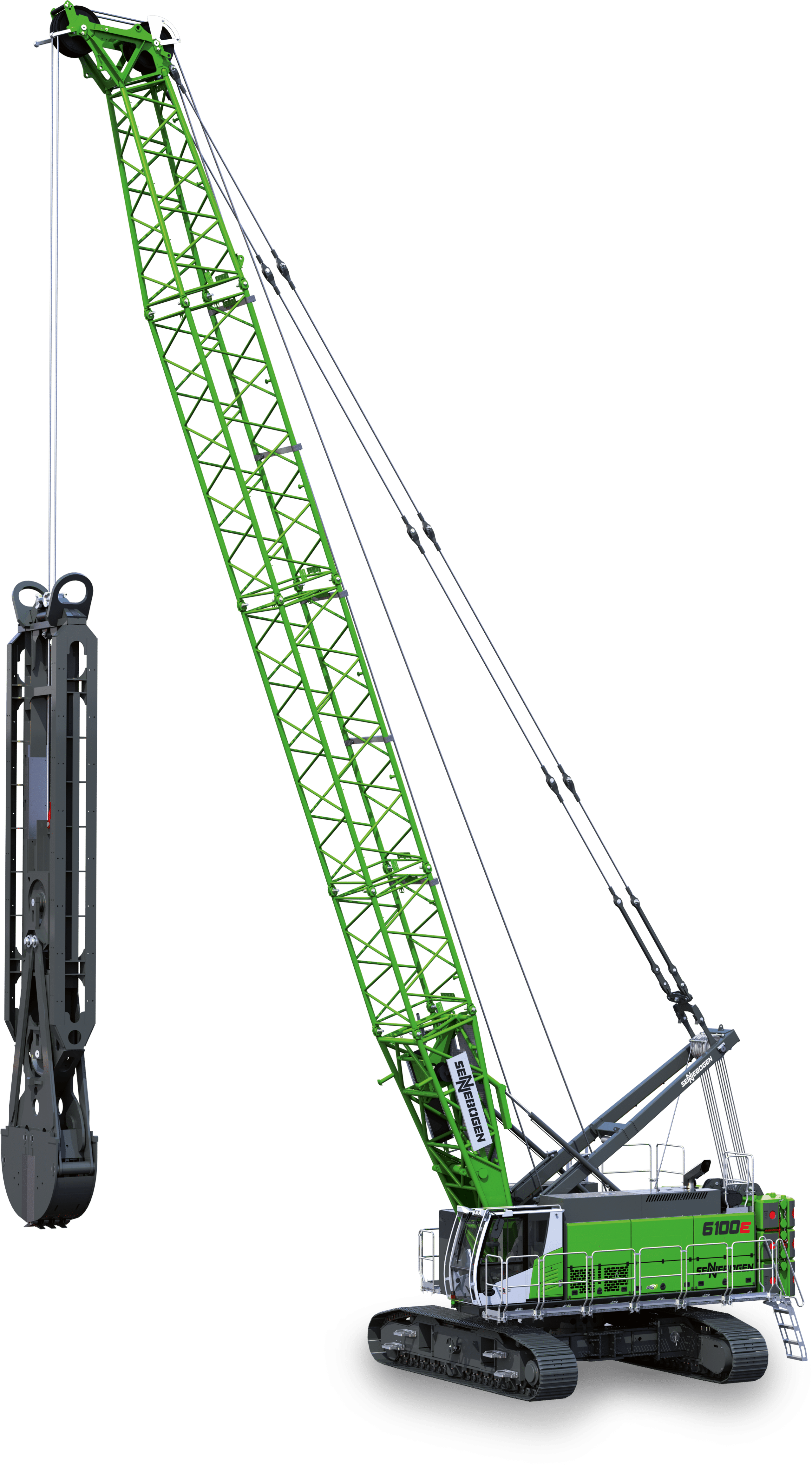 De Sennebogen 6100R is een rupskraan met een hefvermogen van 100 ton, ontworpen voor veeleisende cyclische toepassingen zoals funderingstechniek, diepwandgrijpers, draglines, grijperwerk en dynamische verdichting. Uitgerust met vrije-val-lieren tot 30 ton, een Cummins Stage V-motor van 451 kW, en een gieklengte tot 63,5 meter, levert de 6100R topklasse prestaties op elke werf.