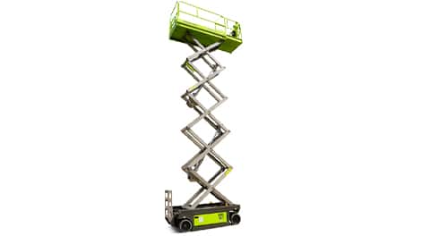 Non-marking banden maken de hoogwerker perfect voor gebruik op binnenvloeren.