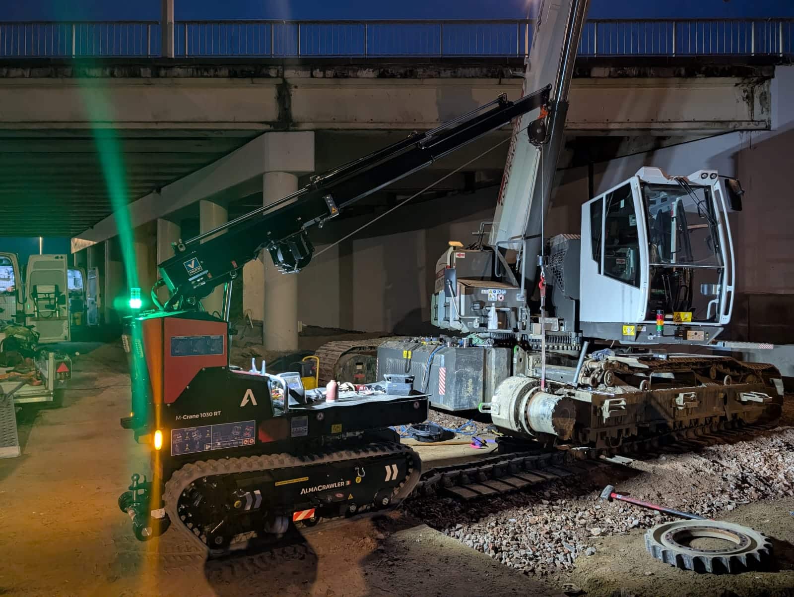 De M-Crane 1030 RT is een geavanceerde elektrische rupsdrager met een geïntegreerde telescopische kraan met een capaciteit van 990 kg, ontworpen voor precisie hijswerk en materiaalhandling in zowel binnen- als buitentoepassingen. Met een bodemvrijheid van 170 mm beweegt hij moeiteloos over uitdagende terreinen, inclusief hellingen tot +/-10° in de lengterichting en +/-5° in de breedterichting.
